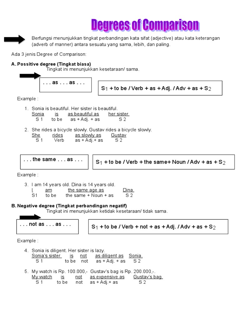Untuk menambah kemampuan kalian dalam memahami materi degree of comparison, pada kesempatan ini akan disajikan latihan soal degree of comparison untuk smp kelas 8. Postingan ini berisi berbagai bentuk contoh soal latihan untuk materi degrees of comparison. Ini adalah kunci jawaban dari soal latihan 'degree of comparison' 2 1. Adnan my nephew change the following nominal sentences into the correct forms! 56 berarti juga secara resmi telah lahir.